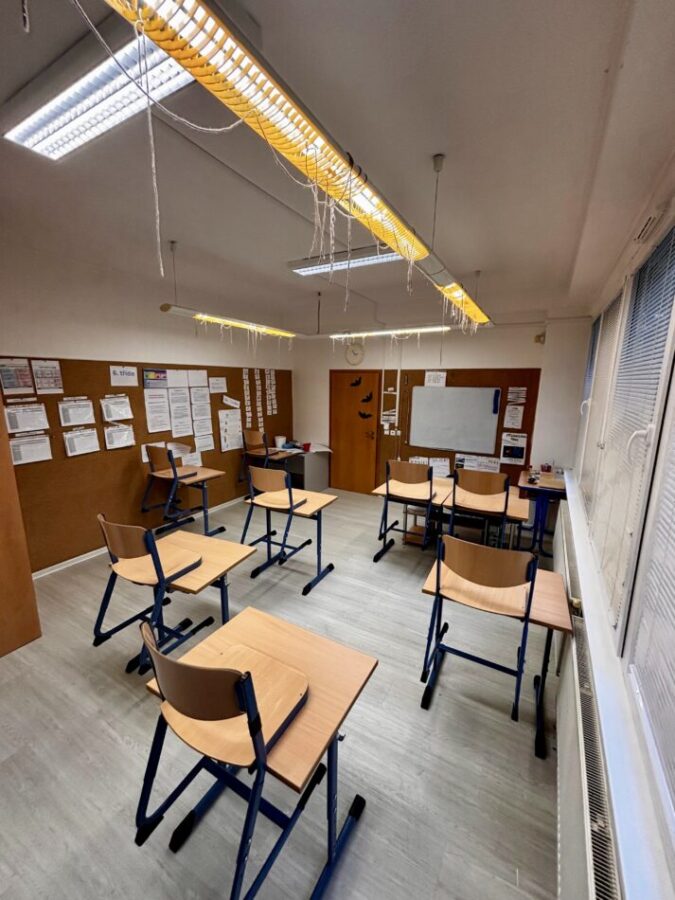 Máme 9 samostatných tříd pro 1. až 9. ročník.